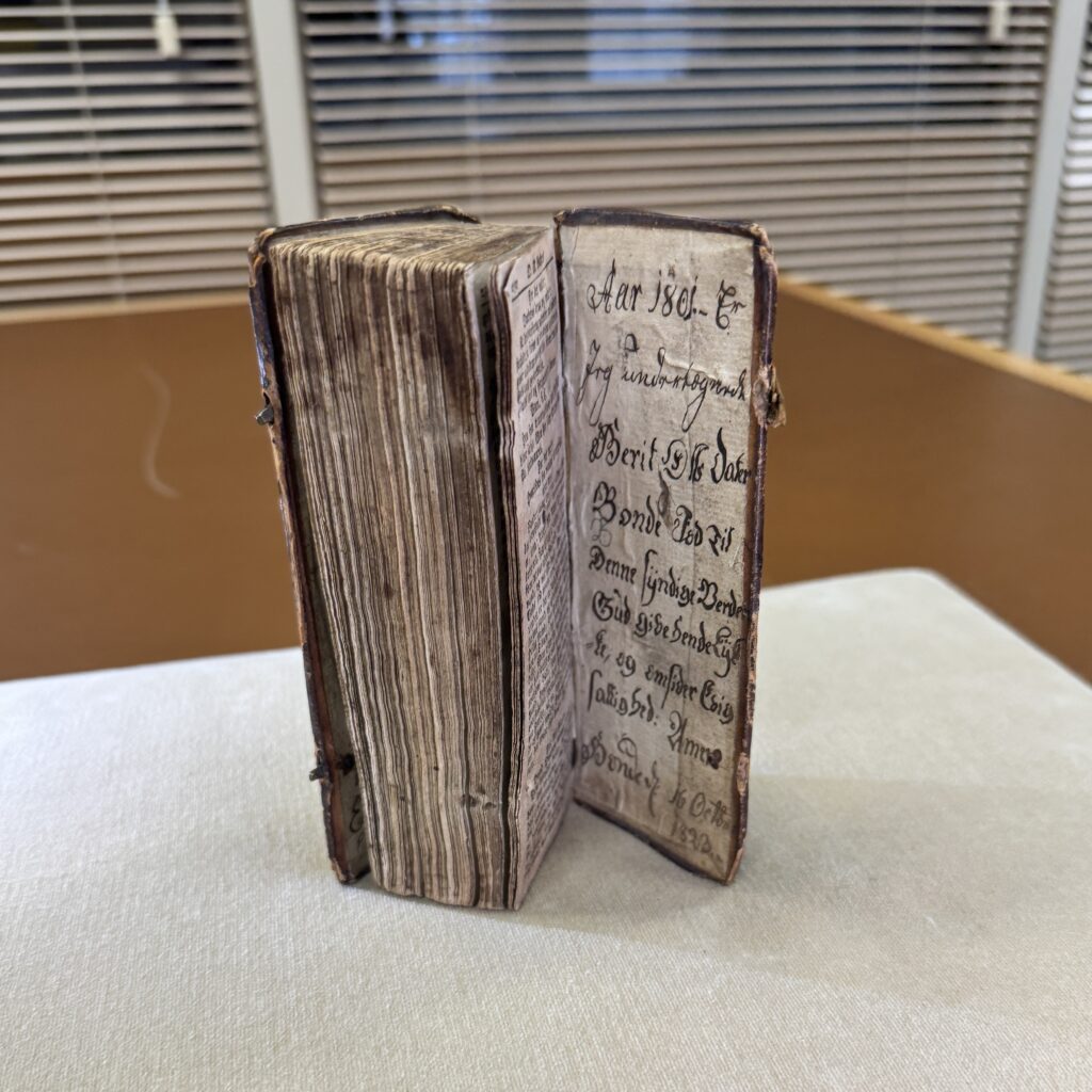 This week, my group members and I have been working with Berit Olsdatter Egge’s Bible. This bible dates from around 1815 and belonged to a student at Carleton. It is written in another language, likely Norwegian, and has significant wear from devoted use throughout the years. I was drawn to this item because it was one of the oldest items available for us to model and looks like it has a lot of history behind it. Here is our Omeka item.